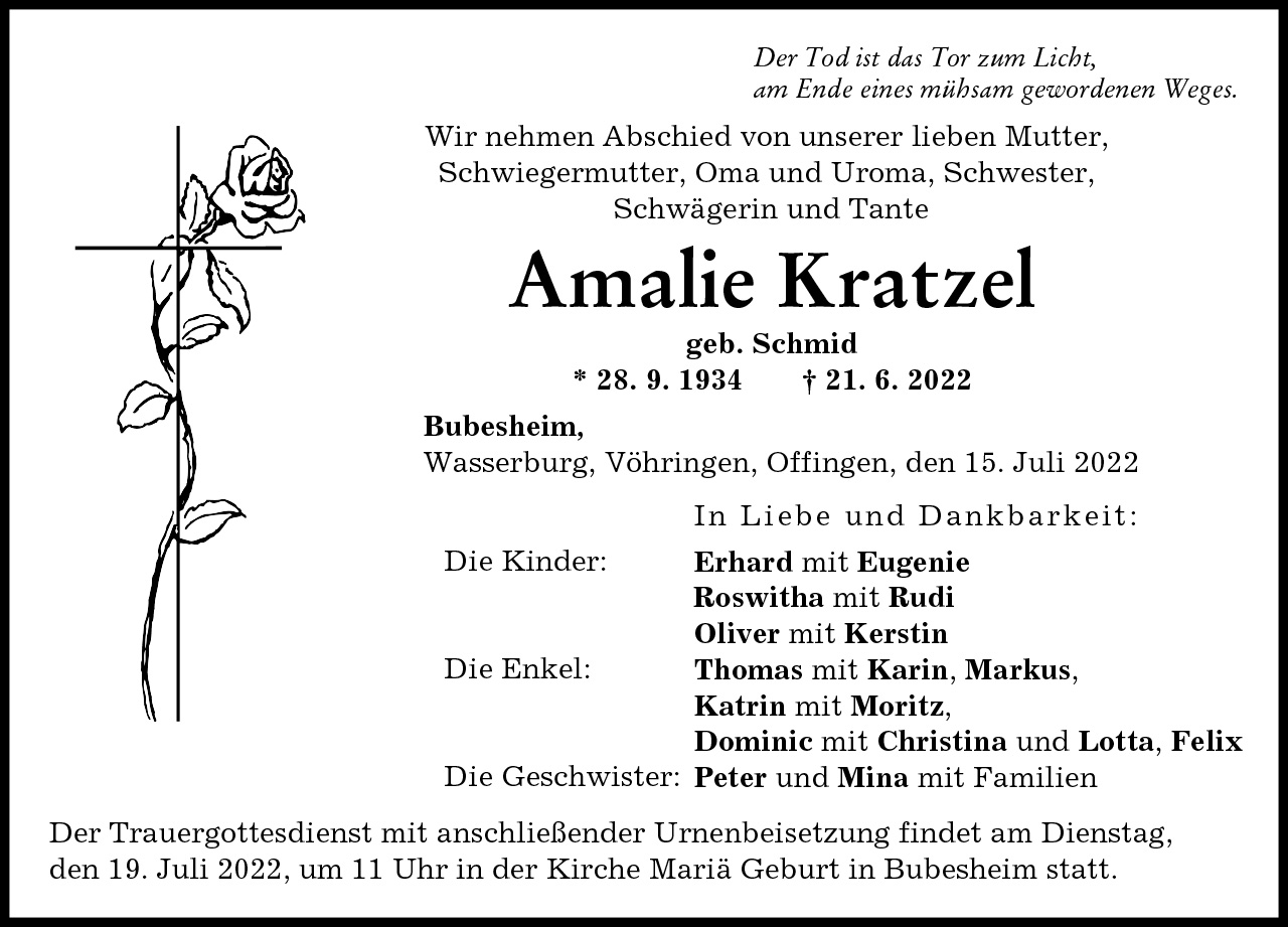 Der Trauergottesdienst mit anschließender Urnenbeisetzung findet am Dienstag,